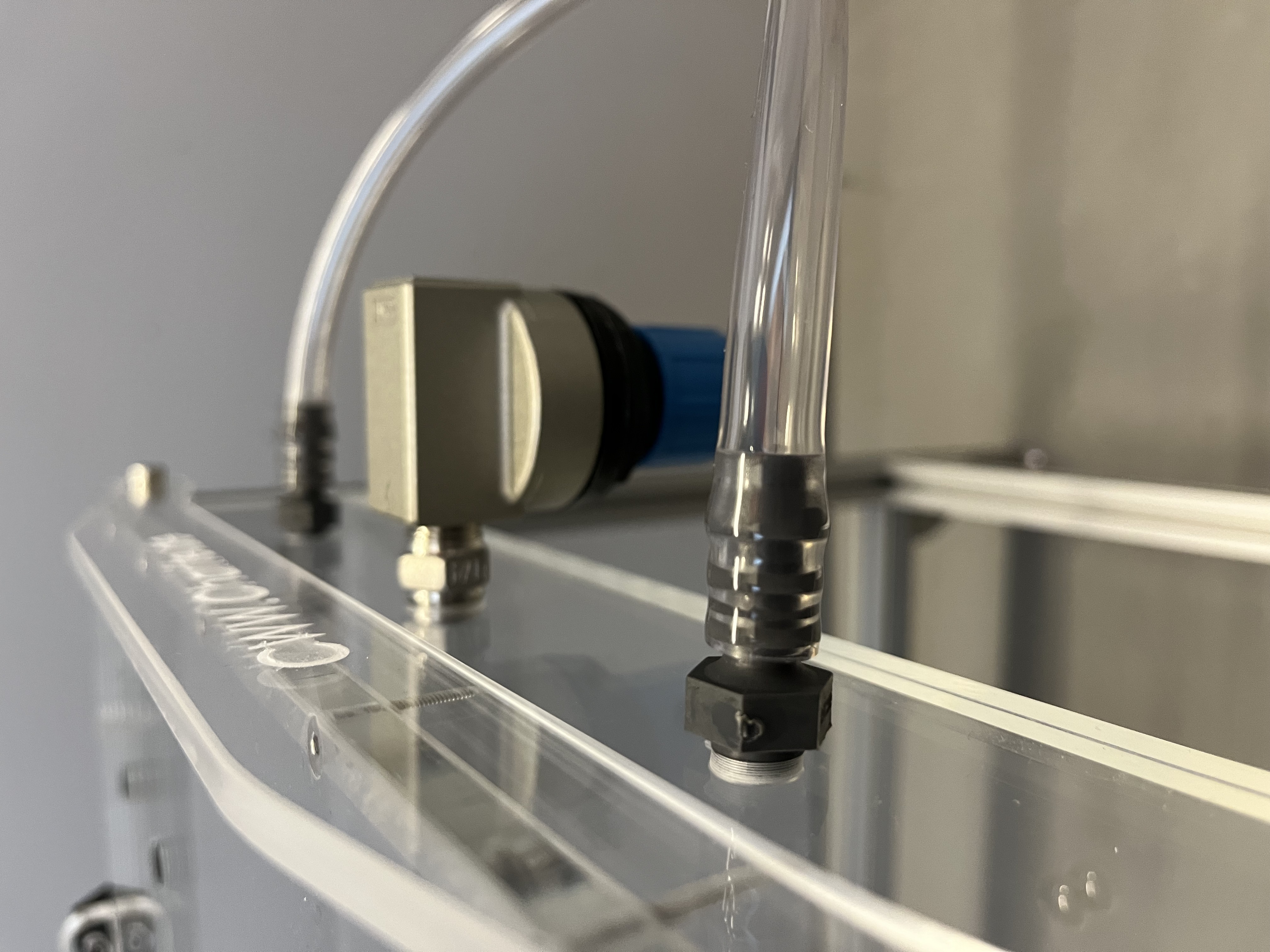 Append to the in one direction pointing end of the Y-hose connector another compressed air hose with the length of your need to the air pressure source.
